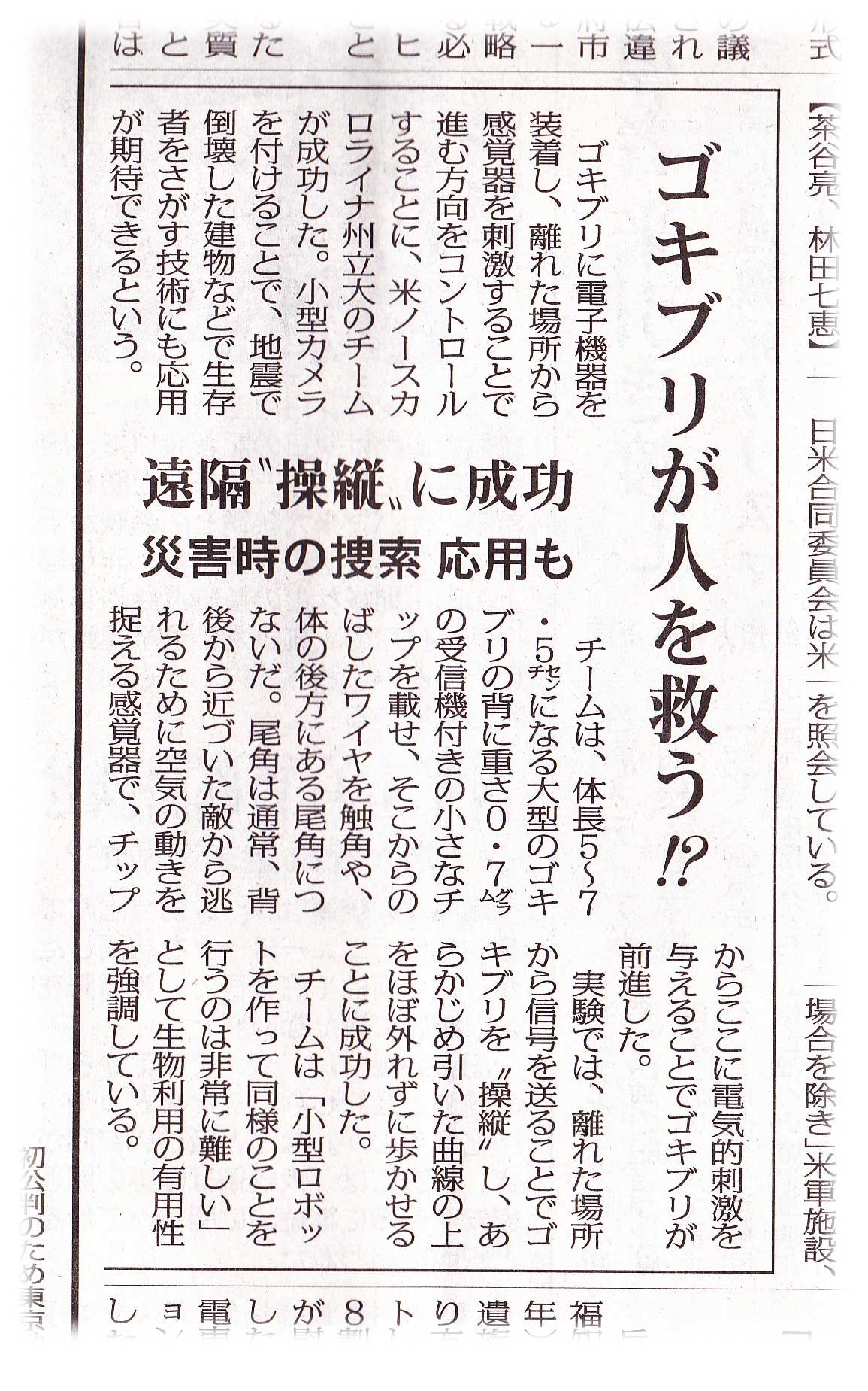 ゴキブリが人を救う記事20120926